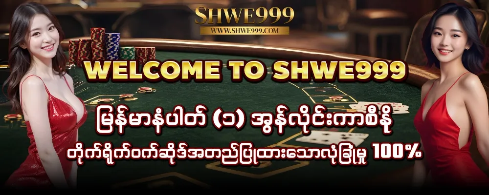Shwe999သည် လုံခြုံမှု၊ မြန်ဆန်သော ငွေသွင်း/ငွေထုတ်စနစ်နှင့် Transparent Bonus Structure ပါဝင်သော Online Gaming Platform တစ်ခုဖြစ်ပါသည်။ Slot, Live Casino နှင့် Football Live Betting များကို တစ်နေရာတည်းတွင် လွယ်ကူစွာ ကစားနိုင်ပါသည်။ယုံကြည်စိတ်ချရသော Gaming Experience ကို ရှာဖွေနေပါက Shwe999သည် သင့်အတွက် သင့်တော်နိုင်ပါသည်။ ယနေ့ပဲ Register ပြုလုပ်ပြီး စတင်နိုင်ပါသည်။